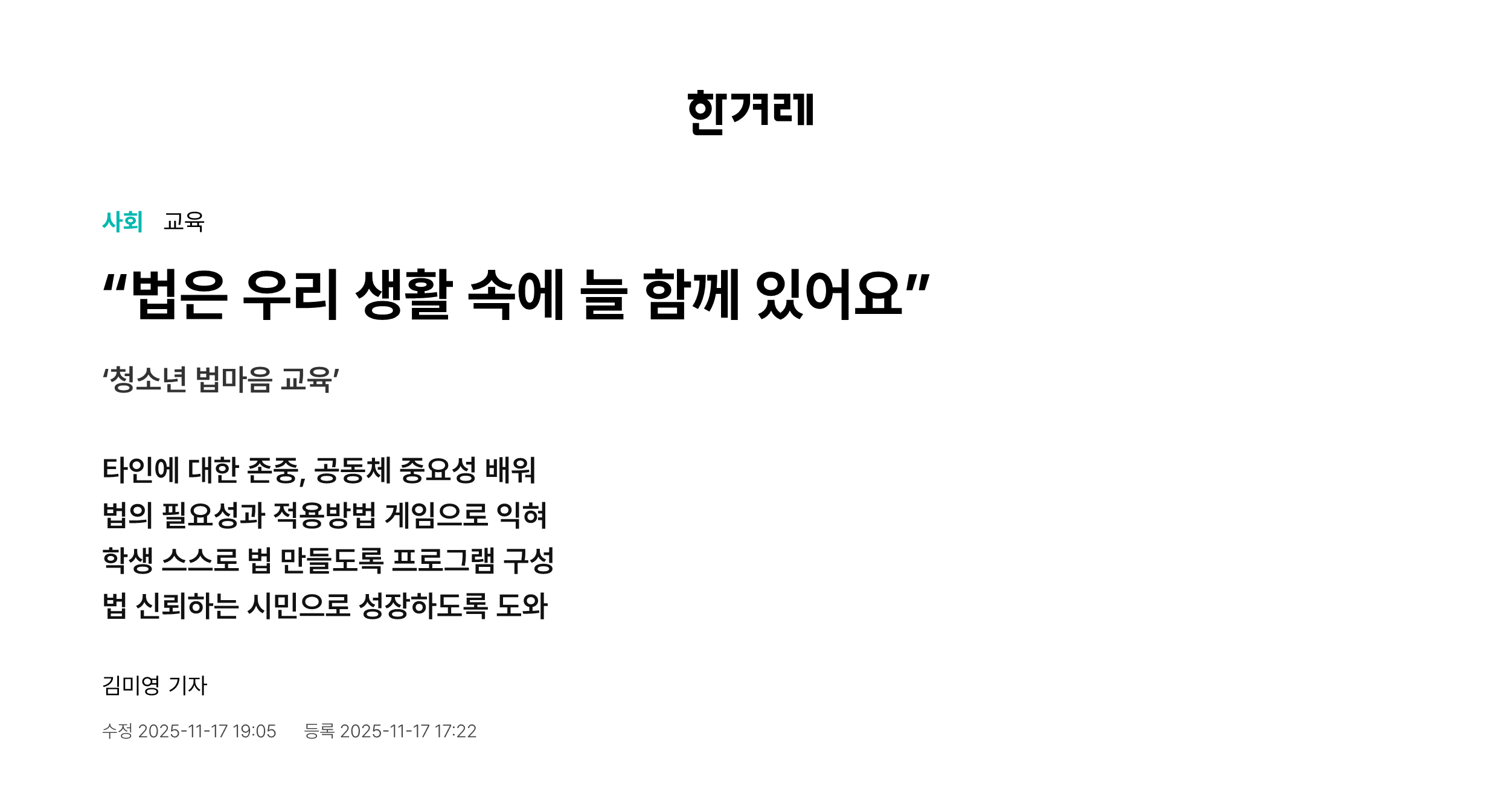 [홍보] 초등학생 법 마음 교육 "법은 우...